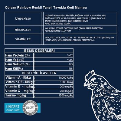 Obivan Rainbow Renkli Taneli Tavuklu Kedi Mamasi 10 Kg Markamama Com Tr